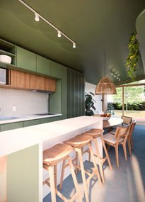 Forro em Placa cimentícia + Pintura epóxi fosca suvinil - trilha da mata e Cashmere Suvinil;