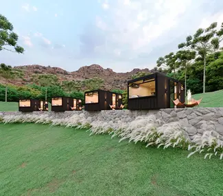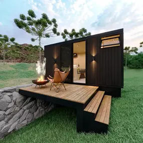Projetada para duas pessoas, a Tiny Dam é uma charmosa cabana de 14,6m² que combina praticidade e aconchego em um espaço compacto e bem planejado. Com quarto completo, mini cozinha funcional, banheiro separado e roupeiro embutido, ela oferece tudo o que é essencial com conforto e elegância. Seu formato versátil permite fácil instalação em diferentes cenários, seja na serra, na praia, no campo ou em meio ao mato, tornando-se o refúgio ideal para quem busca simplicidade, liberdade e uma conexão autêntica com a natureza.